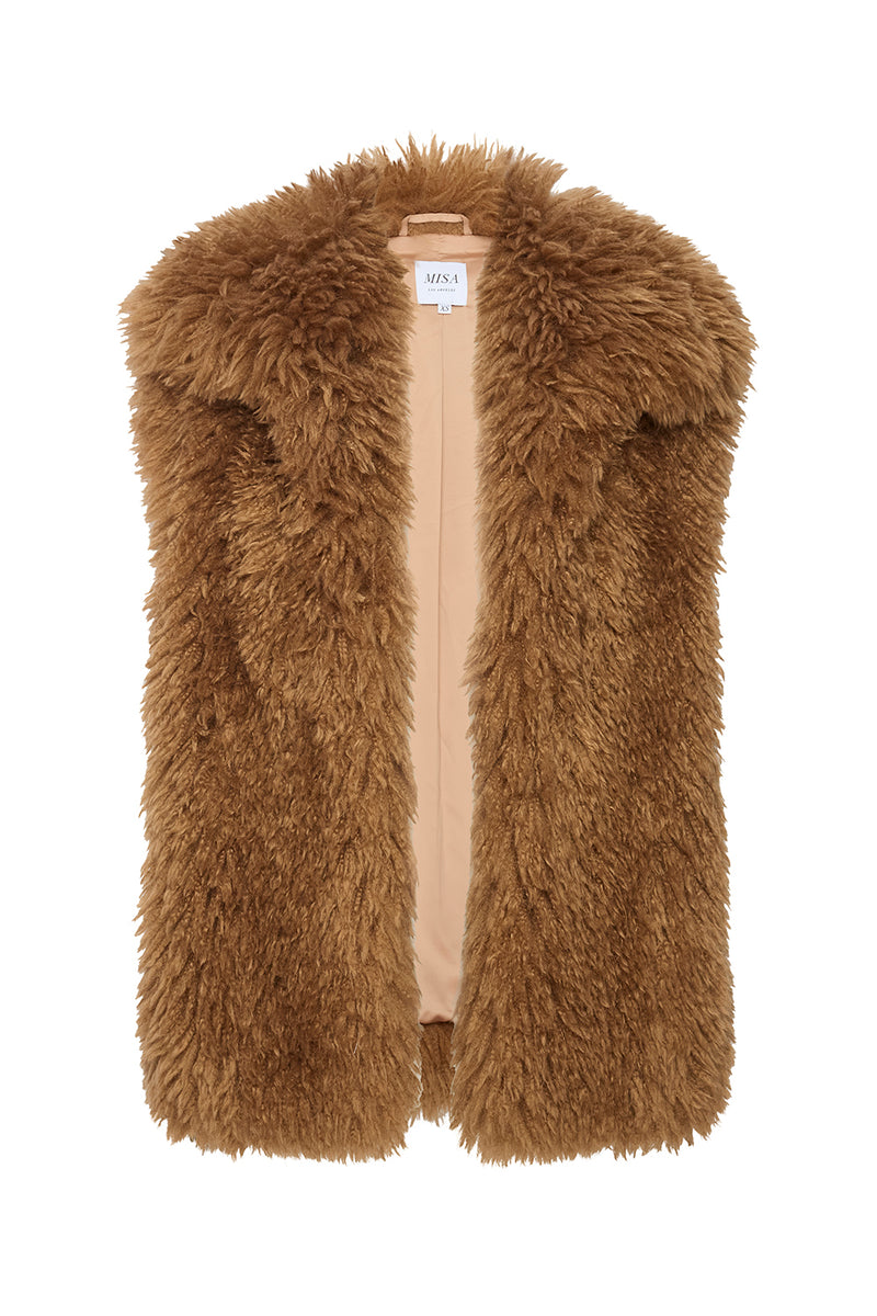 Our new Ryleigh faux fur vest is a chic piece to add to your outerwear rotation. This soft and cozy vest has a fold-over collar and hits below the hip. Featuring hidden front hook and eye closures and double slit pockets. Satin lined. Throw on over any of our dresses or with our mesh tops for the perfect layering look.